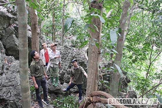 Tổ quản lý, bảo vệ rừng bản Khoang Tuống, xã Suối Bàng (Vân Hồ) tuần tra bảo vệ rừng.