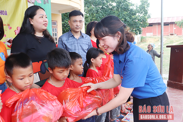 Huyện Đoàn Vân Hồ và Câu lạc bộ Nhân ái xã hội tặng quà cho học sinh có hoàn cảnh khó khăn.