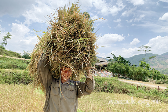 Mùa này, một ngày làm việc trên cánh đồng của bà con bắt đầu từ sáng sớm tinh mơ cho đến khi trời tối. Dường như sức nóng của mặt trời tỏa ra chẳng thể giảm được sự hăng say làm việc của những người nông dân. Gạt những giọt mồ hôi lấm tấm trên trán, chị Quàng Thị Lanh, xã Chiềng Cang, khoe: Năm nay được mùa cộng với thời tiết nắng ráo, thuận lợi cho việc thu hoạch nên chúng tôi rất phấn khởi. Chỉ mong vụ lúa nào cũng thuận lợi như vụ xuân năm nay.