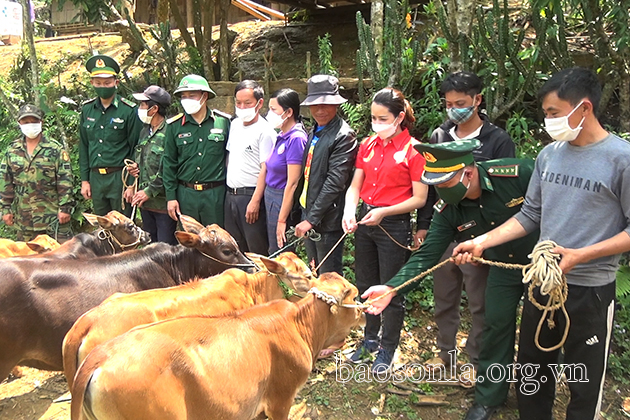 Trong đó, Nhóm thiện nguyện Từ Tâm hỗ trợ 4 con bò giống; Ban CHQS huyện Mai Sơn hỗ trợ 1 con bò giống.