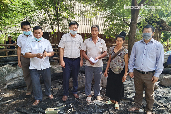 Hội phụ nữ huyện và UBND xã Chiềng San, huyện Mường La vừa thăm hỏi và trao hỗ trợ 60 triệu đồng cho gia đình ông Cà Văn Nẹ, bản Lâm, xã Chiềng San, bị cháy nhà.
