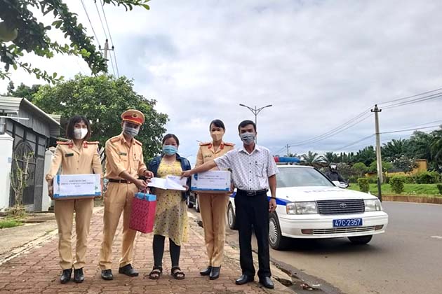 Để động viên, giúp đỡ chị Sua trong quá trình di chuyển về quê, Báo Đắk Lắk và Khối đoàn thể Phòng Cảnh sát giao thông đã hỗ trợ phần quà gồm thực phẩm, thức uống (trị giá gần 1 triệu đồng) và 3 triệu đồng tiền mặt.