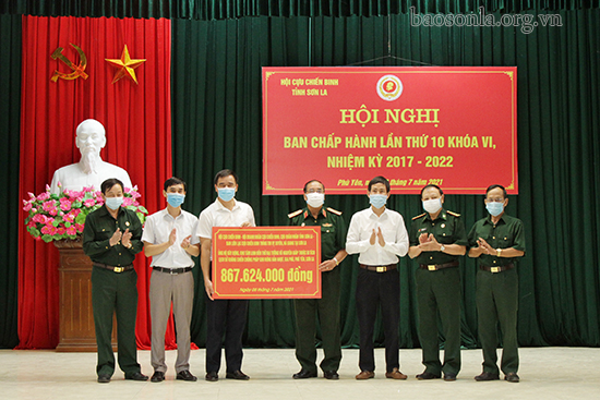 Nhân dịp này, Hội CCB tỉnh đã trao gần 870 triệu đồng ủng hộ huyện Phù Yên xây dựng công trình tu bổ, tôn tạo và phát huy giá trị di tích lịch sử Kháng chiến chống Pháp – khu rừng bản Nhọt tại bản Nhọt, xã Gia Phù (Phù Yên); trao 3 xe lăn cho các hội viên CCB là thương binh và nạn nhân chất độc da cam của huyện Phù Yên.