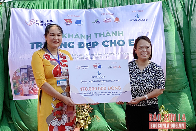Ngày 26/4, Ban Thường vụ Tỉnh đoàn, Ủy ban Hội Liên hiệp Thanh niên Việt Nam tỉnh phối hợp với Công ty cổ phần Stavian hóa chất, tổ chức khánh thành công trình “Trường đẹp cho em” tại Điểm trường Huổi Hiểu, Trường mầm non Mường Chùm, xã Mường Chùm, huyện Mường La và Điểm trường Mậu Xá, Trường mầm non 19/5 Phổng Lập, xã Phổng Lập, huyện Thuận Châu.