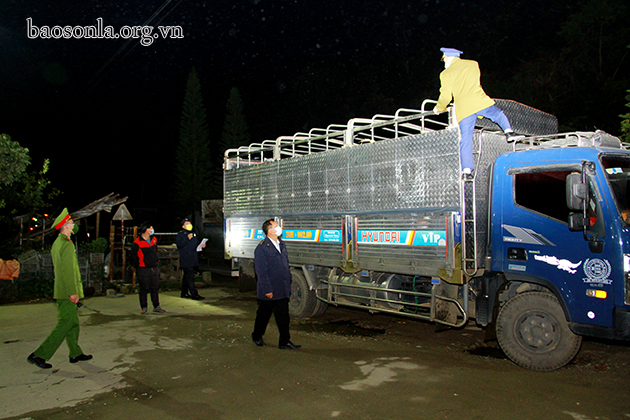 Cán bộ Trạm kiểm dịch động vật Vân Hồ kiểm tra phương tiện chở động vật.