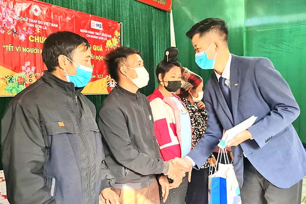 Hội Chữ thập đỏ tỉnh Sơn La phối hợp với Ngân hàng Thương mại cổ phần Quân đội, Chi nhánh tỉnh Sơn La (MB bank Sơn La) vừa tổ chức Chương trình “Tết vì người nghèo và nạn nhân chất độc da cam” xuân Nhâm Dần 2022, tại xã Mường Sai, huyện Sông Mã và xã Mường Và, huyện Sốp Cộp.