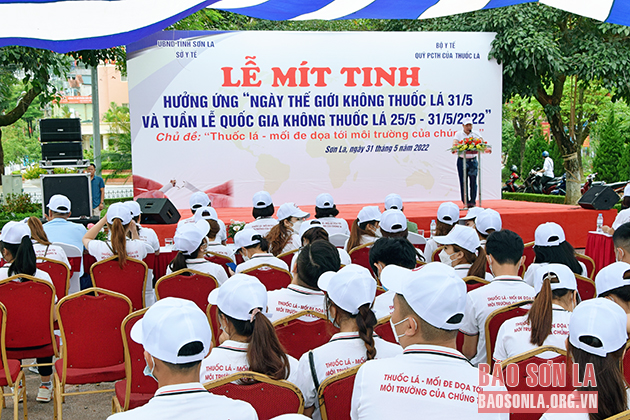 Ngày 31/5, tại Công viên 26/10, thành phố Sơn La, Sở Y tế tỉnh đã tổ chức Lễ mít tinh hưởng ứng Ngày Thế giới không khói thuốc lá 31/5 và “Tuần lễ Quốc gia không khói thuốc (25 - 31/5/2022)”.