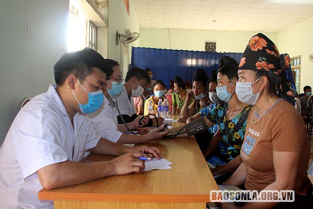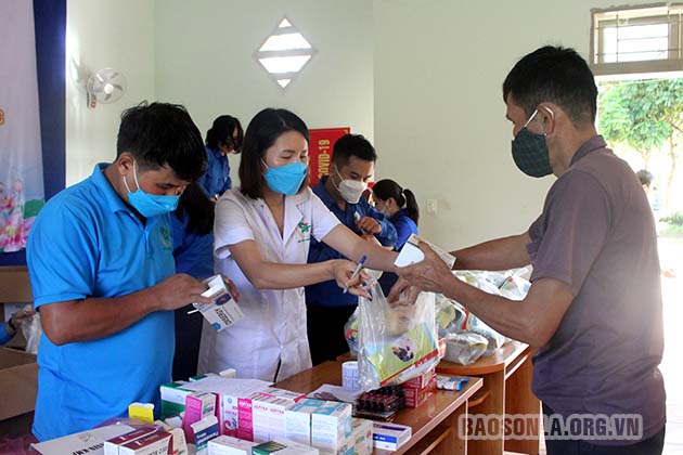Câu lạc bộ Thầy thuốc trẻ huyện Thuận Châu khám, tư vấn sức khỏe cho người dân xã É Tòng (Thuận Châu).