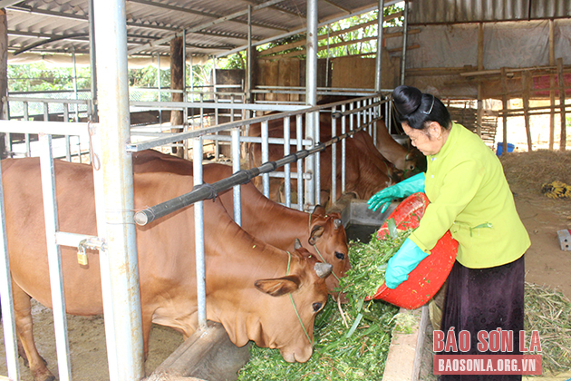 Mô hình chăn nuôi bò nhốt chuồng của hội viên phụ nữ xã Chiềng Mung, huyện Mai Sơn.