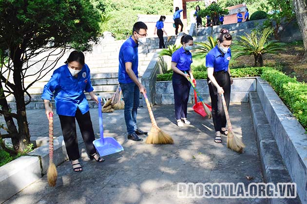 ĐVTN dọn vệ sinh khu vực Nghĩa trang liệt sỹ Nhà tù Sơn La.