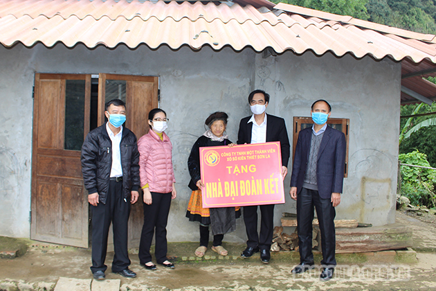 Là một trong số 17 hộ được hỗ trợ làm Nhà đại đoàn kết trong năm nay, bà Lò Thị Sươi, bản Phướng, xã Cà Nàng, có hoàn cảnh đặc biệt khó khăn; ngôi nhà sàn 2 gian đã dột nát, không có khả năng sửa chữa. Bà Sươi xúc động: Gia đình tôi rất biết ơn Công ty TNHH một thành viên Xổ số kiến thiết Sơn La đã hỗ trợ tiền cho gia đình làm ngôi nhà mới, tôi cũng cảm ơn bà con dân bản đã đóng góp ngày công giúp gia đình vận chuyển vật liệu và dựng nhà. Tết này, mẹ con tôi được đón năm mới trong ngôi nhà sàn ấm cúng rồi.