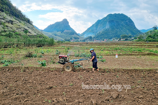 Người dân làm đất chuẩn bị gieo trồng vụ xuân.