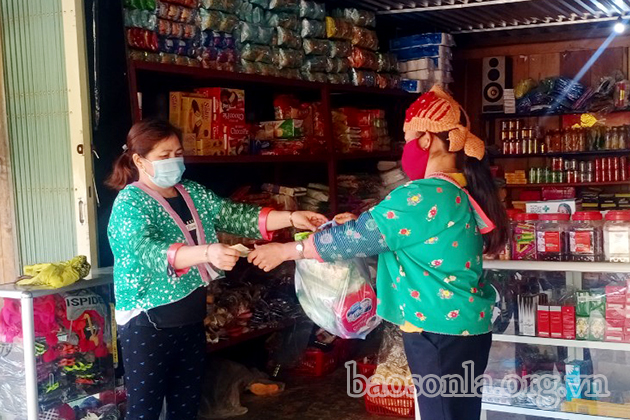 Cửa hàng tạp hóa của gia đình chị Vì Thị Dúa (bên trái), bản Co Tòng, xã Co Tòng (Thuận Châu).