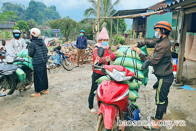 Hỗ trợ gạo cho các hộ nghèo trên địa bàn huyện Quỳnh Nhai.