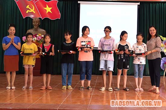 Trao dụng cụ phục vụ học tập cho học viên tham gia mô hình "Nét đẹp khăn piêu".