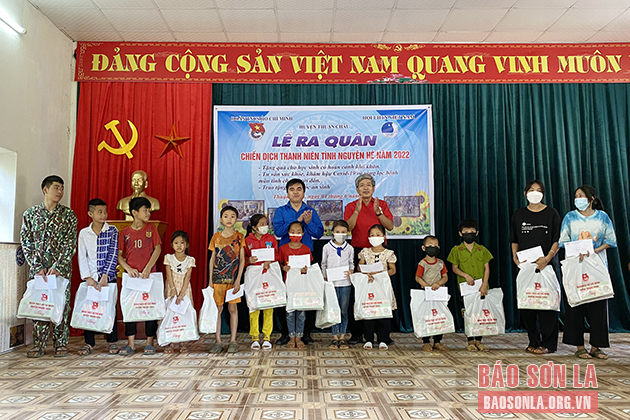 Huyện đoàn Thuận Châu đã tặng 20 suất quà cho học sinh có hoàn cảnh khó khăn ở xã Tông Cọ, mỗi suất trị giá 300 nghìn đồng; tư vấn sức khoẻ, khám hậu Covid-19, sàng lọc bệnh mãn tính và tặng 150 túi thuốc an sinh cho người dân trong xã.