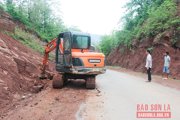 Khắc phục sạt lở tuyến đường vào xã Chiềng Khoi, huyện Yên Châu.