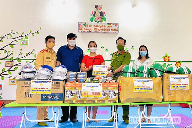 Đoàn đã trao tặng 50 chiếc mũ bảo hiểm đạt chuẩn, 100 bộ bát, thìa cùng nhiều quà tặng khác cho toàn bộ điểm trường với tổng trị giá 15 triệu đồng. Đoàn thanh niên Công an huyện Mộc Châu cũng triển khai dự án Nuôi em Mộc Châu, tài trợ trên 163 triệu đồng để nuôi cơm trưa cho 121 cháu nhỏ thuộc 4 điểm bản khó khăn nhất của xã, gồm Hin Pén, Dân Quân, Pha Luông, Suối Thín trong năm học 2021-2022.