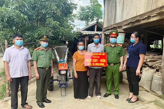 Ngày 27/5, Công an huyện Sốp Cộp đã thăm và tặng 1 máy cày, bừa cho gia đình ông Lò Văn Thiến, trú tại bản Mường Và, xã Mường Và (huyện Sốp Cộp), tổng trị giá 19,5 triệu đồng, từ nguồn kinh phí do cán bộ, chiến sỹ Công an huyện và các nhà hảo tâm đóng góp ủng hộ.