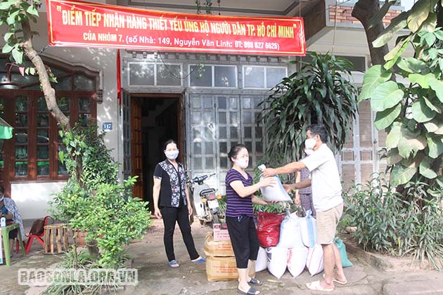 Nhân dân tổ 7, phường Tô Hiệu (Thành phố) tiếp nhận tại nhà nhu yếu phẩm ủng hộ cho nhân dân thành phố Hồ Chí Minh.