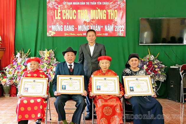 Ngày 24/1, thị trấn Yên Châu, huyện Yên Châu đã tổ chức Lễ chúc thọ, mừng thọ cho 51 người cao tuổi, gồm 2 người 95 tuổi, 49 người từ 70-85 tuổi.