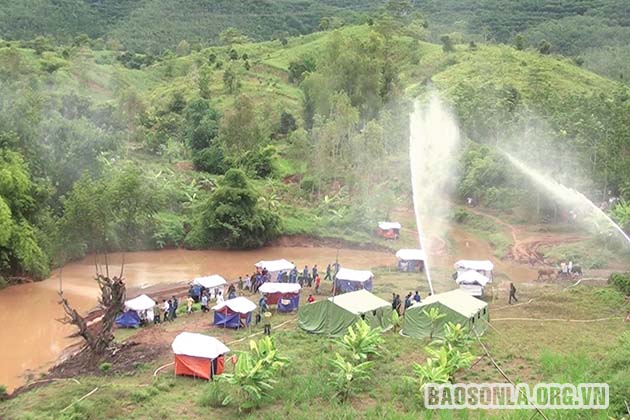 Diễn tập phòng, chống thiên tai, tìm kiếm cứu nạn tại xã Mường Khiêng (Thuận Châu).