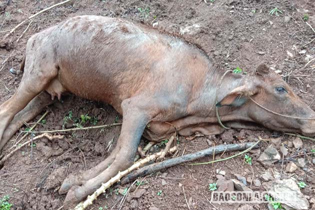 Trâu già bị chết do rét đậm, rét tại tại xã Mường É.