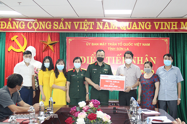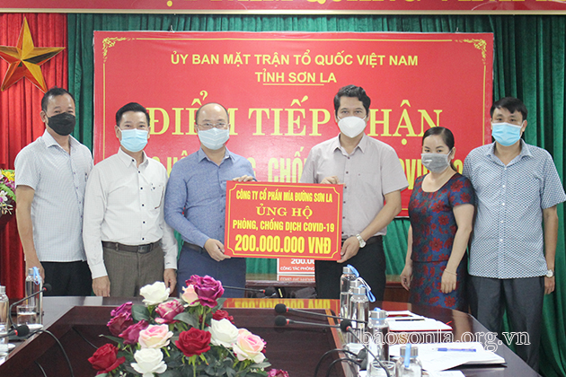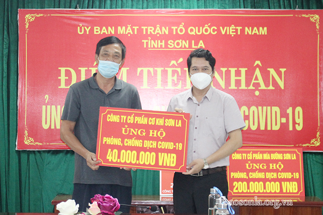 Ngày 6/8, Ủy ban MTTQ Việt Nam tỉnh đã tiếp nhận 200 triệu đồng từ Công ty cổ phần Mía đường Sơn La; 200 triệu đồng từ Viettel Sơn La; 40 triệu đồng của Công ty cổ phần cơ khí Sơn La ủng hộ phòng, chống dịch COVID-19.