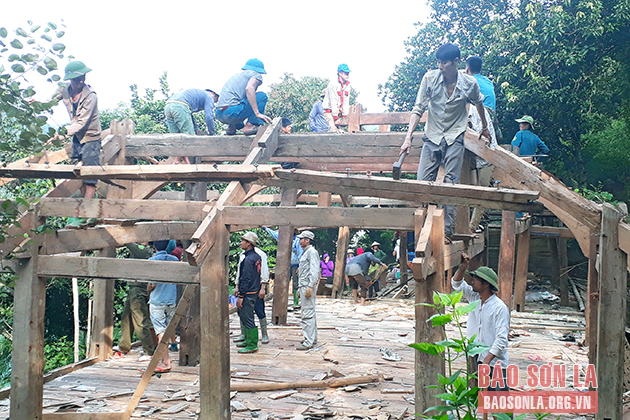 ĐVTN xã Bắc Phong, huyện Phù Yên hỗ trợ người dân chịu ảnh hưởng của thiên tai di dời nơi ở.