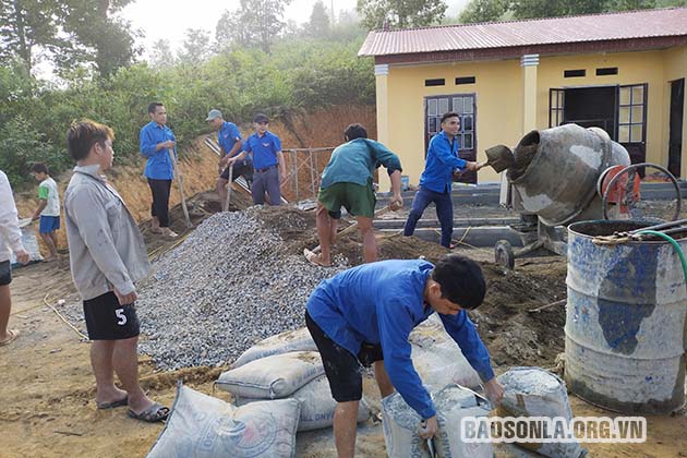 ĐVTN tham gia đổ sân bê tông Trường mầm non Pá Hợp, xã Nậm Giôn (Mường La).