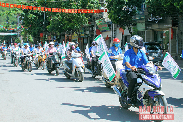 Đoàn viên, thanh niên Công ty Điện lực Sơn La ra quân tuyên truyền chương trình tiết kiệm điện.