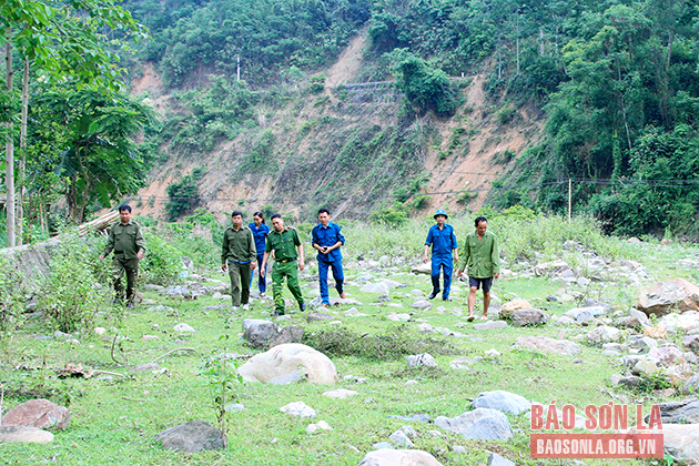 Ban Chỉ huy PCTT và TKCN xã Tường Phong khảo sát khu vực suối Tre.