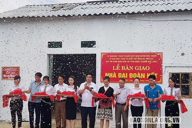 Lãnh đạo Quỹ bàn giao nhà đại đoàn kết cho người dân xã Tân Lập (Mộc Châu).