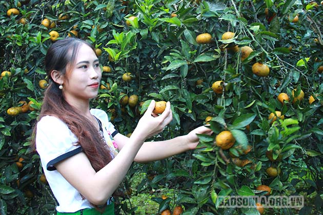 Mô hình quýt bản địa tại bản Ngoại, xã Chiềng Cọ mang lại hiệu quả kinh tế cao cho người dân.