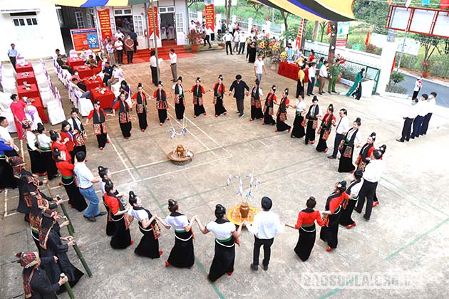 Vòng xòe đoàn kết tại lễ công bố nông thôn mới nâng cao.